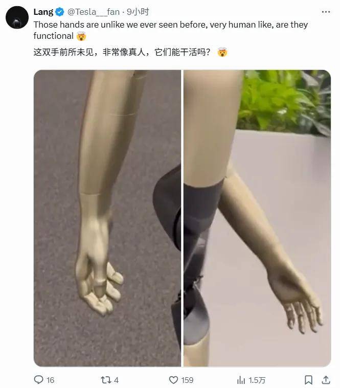还有人惊叹 Optimus 的手看起来非常像真人,但是这个手看起来像金属一体的,似乎只是个摆设。