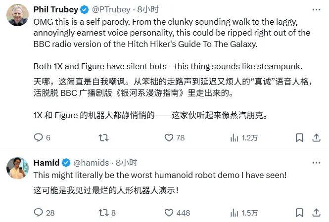 但有人认为这就是 Grok 语音集成,「使用的 Grok 声音过于做作,拖沓且延迟严重。走路声音很大,听起来就像一桶螺栓在晃动。」