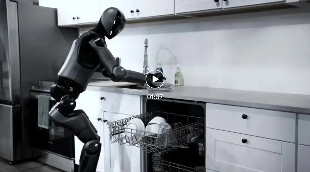 另一边,Figure 也放出了机器人把碗整齐地装进洗碗机的视频。视频里,机器人在厨房精准地把碗、盘子、杯子一件件放进洗碗机,动作流畅精准。