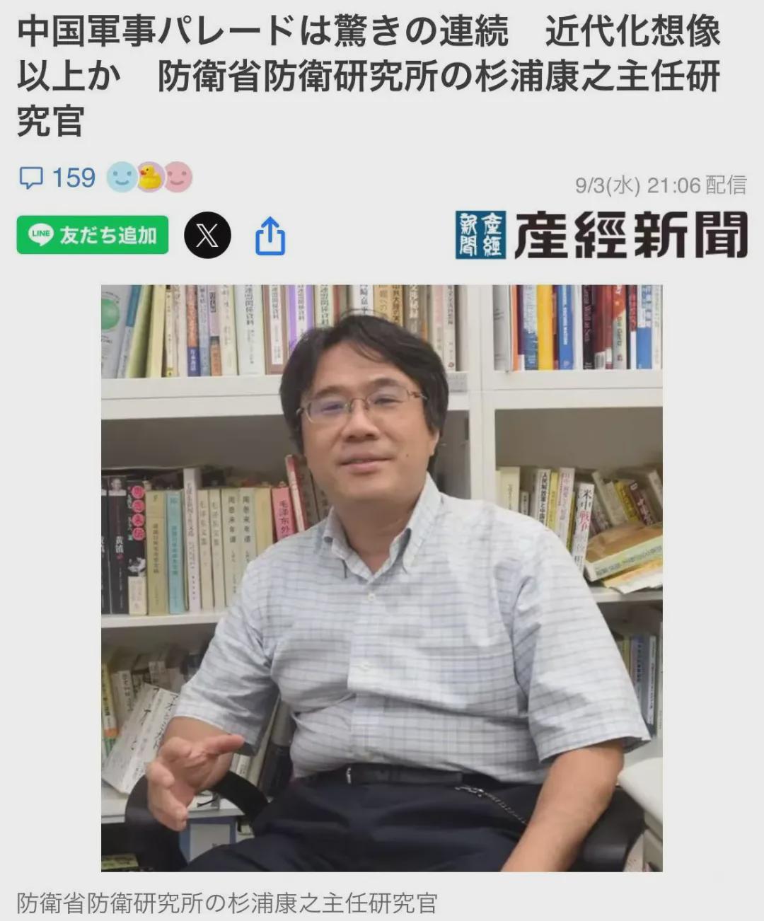 《产经新闻》连夜发稿:中国阅兵仪式,震惊连连,超出现代化想象?防卫省防卫研究所的杉浦康之主任研究官